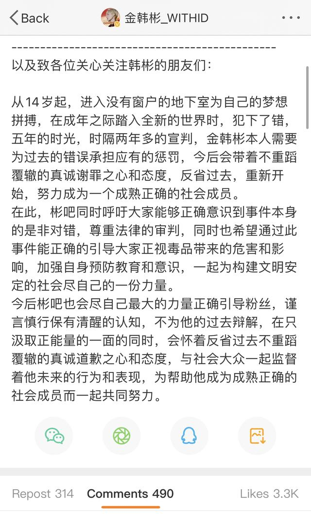 不过,部分粉丝却认为,金韩彬已经“付出了他应付的代价”,应该给他改过自新的机会。