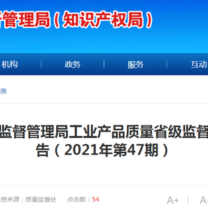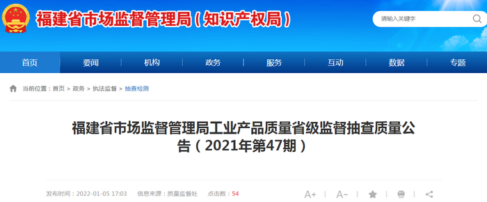 中国质量新闻网讯 近日,福建省市场监督管理局发布工业产品质量省级监督抽查质量公告(2021年第47期)。