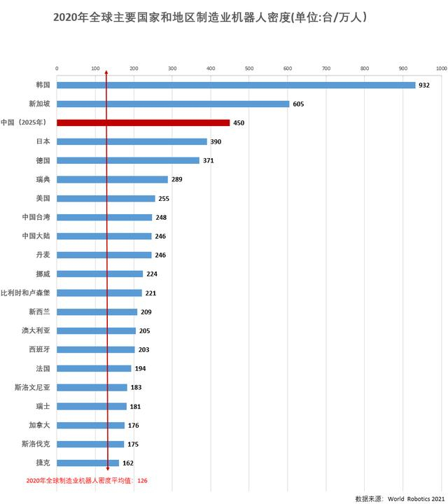 制造业机器人密度被认为是衡量国家制造业自动化发展程度的重要标准之一。