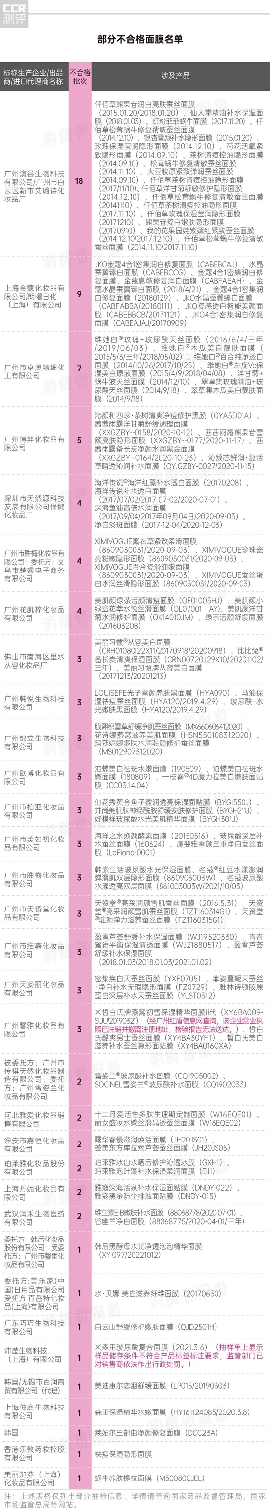 2022年1月,《消费者报道》整理了国家及各地省、市级市场监督管理局和药品监督管理局(包括原食品药品监督管理局)等在2016年至2021年关于面膜的质量抽检情况。