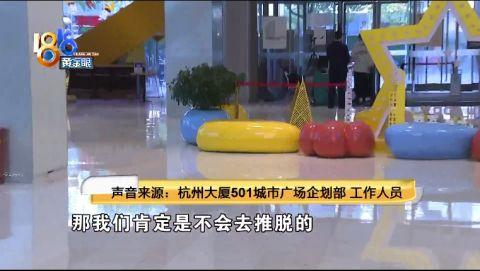 现在,杭州大厦501城市广场一楼的装饰物都摆在了一起,中间不能通过,并且加了警示带。
