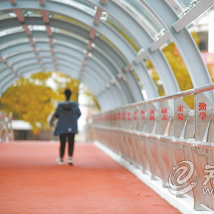 昨日上午,记者在银湖南路看到,设计使用年限可达100年的新“状元桥”更美观、大气、安全,4个桥墩都不在快车道内,拓宽到4米多的桥面采用红色塑胶材质,新加装的圆弧形顶棚为双层钢化夹胶玻璃,不会破碎脱落,师生再也不用担心下雨天过桥会湿滑、淋雨。更为贴心的是,长长的不锈钢栏杆上方还用红字突出“励志、勤学、求是、创新”安师大附中校训,劝勉从桥上走过的每一位学子铭记在心。记者采访时,恰巧有几位学生在桥上拍照。一位高三学子表示,老桥拆除时,他也特意进行了合影,无论新、旧,这座“状元桥”都连接着两个校区,也连接着他们最奋斗最刻骨铭心的一段青春。