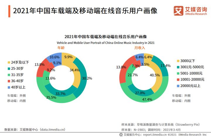 相较移动端,在线音乐车载端25岁以上用户占比更高,占比超九成。月收入在10000元以上的用户占比达20.2%。艾媒咨询分析师认为,在线音乐车载端用户群体属于置车人群,用户更加成熟、收入水平更高,消费能力更强。