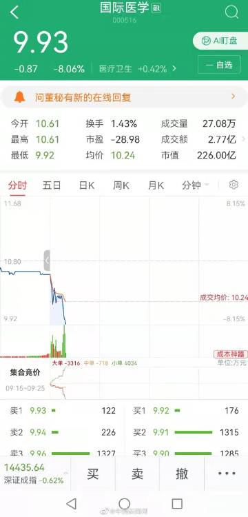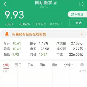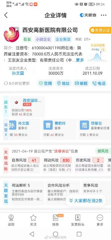 【#西安孕妇流产涉事公司股价大跌#】#西安孕妇流产涉事医院为营利性#1月6日,#西安孕妇流产事件相关责任人被处理#,西安高新医院总经理范郁会被停职。根据西安卫健委官网,西安高新医院2011年经营性质由非营利性变更为营利性。据天眼查显示,西安高新医院有限公司是A股上市公司“国际医学”的全资子公司。国际医学的财报显示,西安高新医院是重要的营收及利润来源。2020年度,西安高新医院收入7.99亿元,实现净利润6066.81万元。截至发稿,国际医学股价大跌,跌幅一度超8%。(李金磊)
