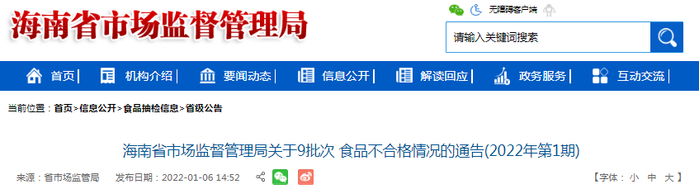 海南省市场监督管理局抽检餐饮食品86批次 不合格2批次