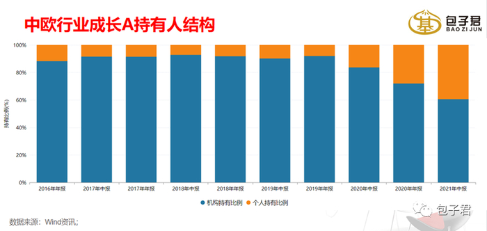当然王培长期优秀的投资能力还是逃不开机构投资者的眼睛的。自他接手中欧行业成长混合以来,该基金机构持有比例维持较高水平