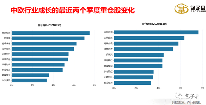 从中欧行业成长A2021年三季度重仓的行业来看,主要买了医药、基础化工、机械,其中可以看到不少新能源公司,如天赐材料、赣锋锂业、宁德时代等。