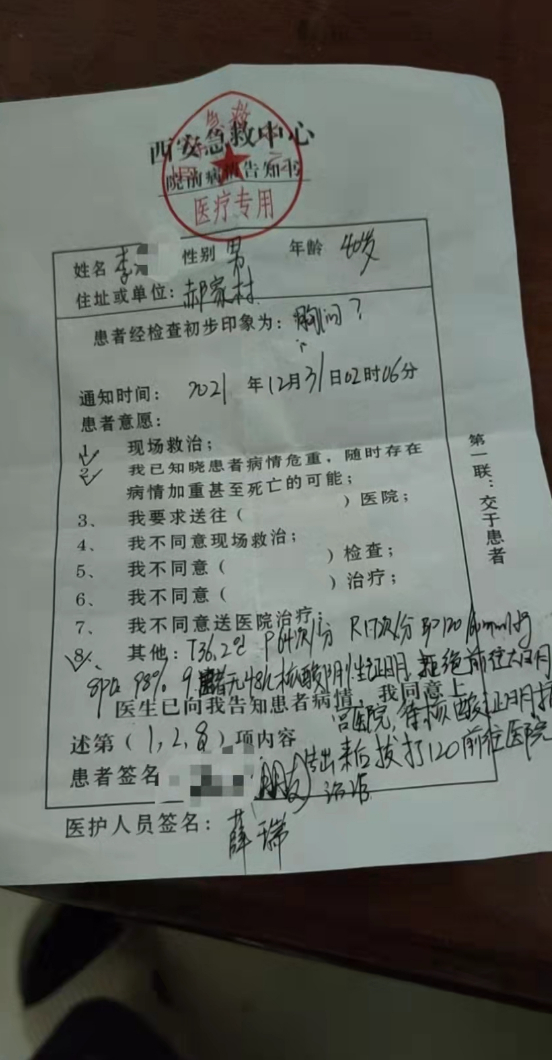 原标题:西安39岁男子突发胸痛,连续被3家医院拒诊最终猝死