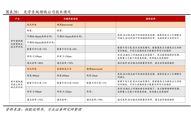 SLA 紫外线光斑系统打破垄断。光学系统业务主要包括固体激光剥离线光斑、固体激光退火线光斑等多种光学系统。固体激光退火(SLA)紫外线光斑系统2020年已交付第一台样机,目的在于打破相干公司准分子激光退火过去十年来在该领域的全球优势地位,成为柔性显示行业低温多晶硅退火工艺的全新解决方案。