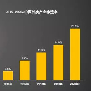 图:2015-2020e中国外卖产业渗透率(来源:美团·新餐饮研究院)