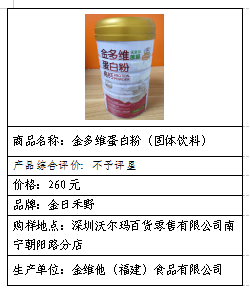 记者注意到,“周氏”样品的售价为159元/罐,“蕙氏启能”样品售价为280元/罐。另外,金多维蛋白粉样品的蛋白质含量只有28.08g/100g,售价为260元/罐。