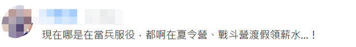对于台军中有万余人中度肥胖,岛内网友留言表示:“现在哪是在当兵服役,都在‘夏令营’‘战斗营’度假领薪水!”“台湾的兵可以作战吗?完全没有信心。”
