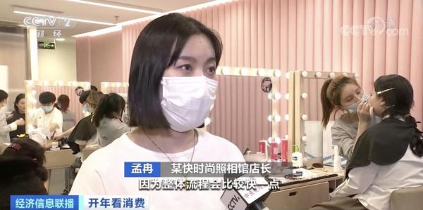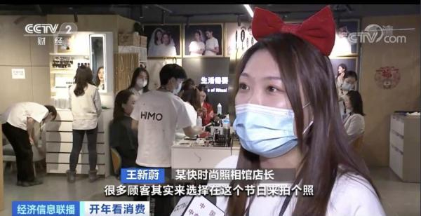某快时尚照相馆店长 王新蔚:很多顾客选择在节日拍个照,就是想增加自己的仪式感,再发个朋友圈。基本上每天都是一个满的状态,周末基本都是爆满的状态。