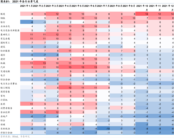 行业景气度:2021下半年全市场景气度整体下行,2022年可关注金融板块的投资机会