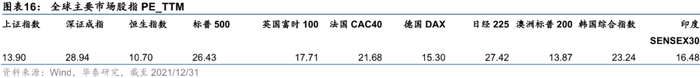 2021年全球主要股指估值普遍走低,当前恒生指数PE_TTM相对较低