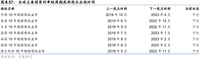 此外,需要注意的是,同比序列的“拐点”并不意味着真实序列的拐点:从底部拐点来看,同比序列的底部拐点相比真实序列拐点会提前4个月左右出现;而从顶部拐点来看,原始顶部拐点两侧的长度并非完全对称,上行时长通常大于下行时长,因此同比序列的顶部拐点不一定能够准确指示原始序列的顶部拐点,仅可用作参考,因此在下文中我们将主要关注利率的周期底部拐点以及其当前所处位置。