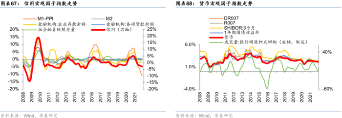采用宏观经济指标合成因子判断:2022年增长、通胀因子下行,信用、货币因子拐头向上