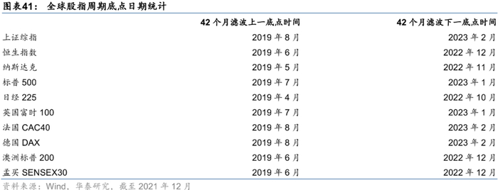 根据全球股指周期状态与历轮基钦周期实际涨跌规律判断,2022上半年大概率出现拐点