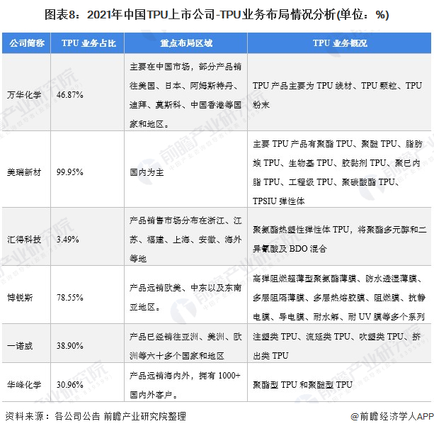 原标题:【最全】2022年TPU行业上市公司全方位对比(附业务布局汇总、业绩对比、业务规划等) 来源:前瞻产业研究院