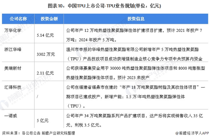 4、TPU行业上市公司TPU业务规划对比