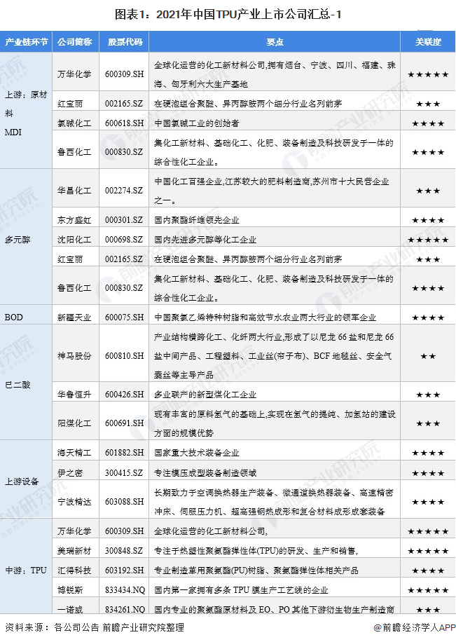 1、TPU产业上市公司汇总