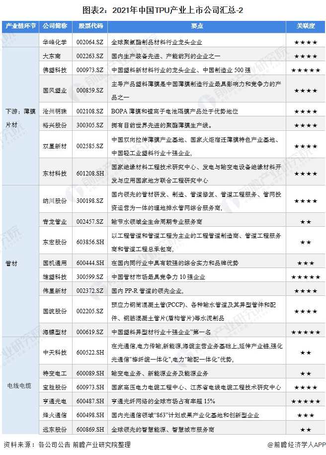 2、TPU行业上市公司业务布局对比