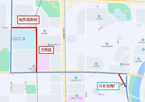 站点设置:临时取消府城大道益州大道口;临时增设天晖路。