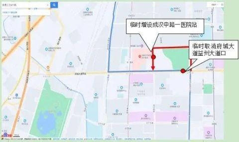 站点设置:临时取消府城大道益州大道口;临时增设成汉中路一医院。