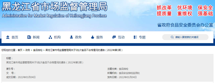 黑龙江省市场监管局抽检:1批次五香豆干不合格