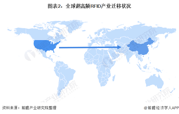 自超高频RFID产业发展以来,全球超高频RFID市场主要由美国主导,美国超高频RFID市场龙头企业包括英频杰、意联科技、恩智浦等,具体产品包括高性能标签芯片、阅读器、阅读器芯片、软件、天线和RFID子系统集成,销售范围覆盖全球各个国家和地区,市值也处于全球领先水平。而近几年,中国超高频RFID市场逐渐发展起来,并在超高频RFID标签市场实现超过半数的产能,国内龙头企业布局也逐步完善,并将其业务朝超高频RFID读写机、系统集成方向发展,产业链部署较完善。预计全球超高频RFID产业将进一步从美国向中国迁移。