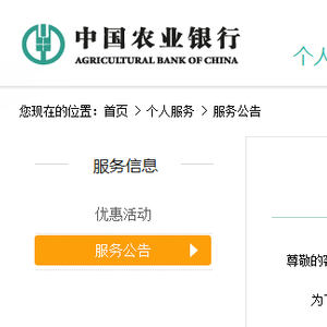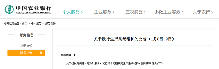 中国农业银行官网1月7日发布公告。