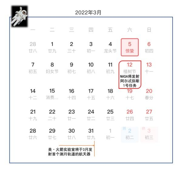 3月12日 NASA将发射阿尔忒弥斯1号任务开启“再登月”