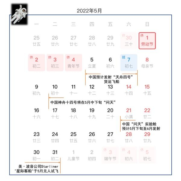 5月中下旬 中国神舟十四号将“问天”