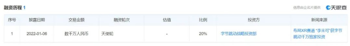 据天眼查数据,杭州李未可科技有限公司显示发生股东变更,新增字节跳动关联公司北京量子跃动科技有限公司,持股比例20%,位列第二大股东。