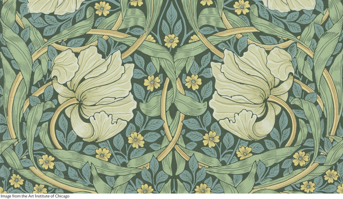 19世纪80年代,工艺美术运动(Arts and Crafts movement)在英国轰轰烈烈地展开,一大批建筑师、设计师、工匠和艺术家向工业化生产发起挑战,对抗其对传统工艺的冲击。威廉·莫里斯(William Morris)是这一时期最有影响力的人物之一。早在19世纪中期,莫里斯就开始倡导“重拾手工艺乐趣”。1861年,他创立了自己的公司——Morris & Co.。以“创造出人人都能负担得起的艺术”为使命,以大自然为灵感,他同几位合伙人一起,设计出一系列手工壁纸、纺织品和家具,将美学带入生活,让艺术融入日常。