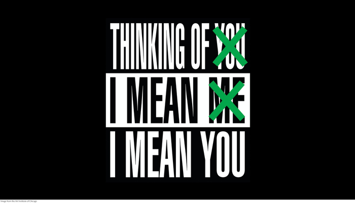 在过去的40年里,没有哪位艺术家像芭芭拉·克鲁格(Barbara Kruger)一样,能把文字与图像的结合发挥到极致。她的每一件作品都富有挑衅意味,极具视觉冲击力。她频繁引用格言警句,以幽默却又发人深省的方式,批判着大众文化、消费主义和权力循环,引导我们重新思考人与人之间的关系。