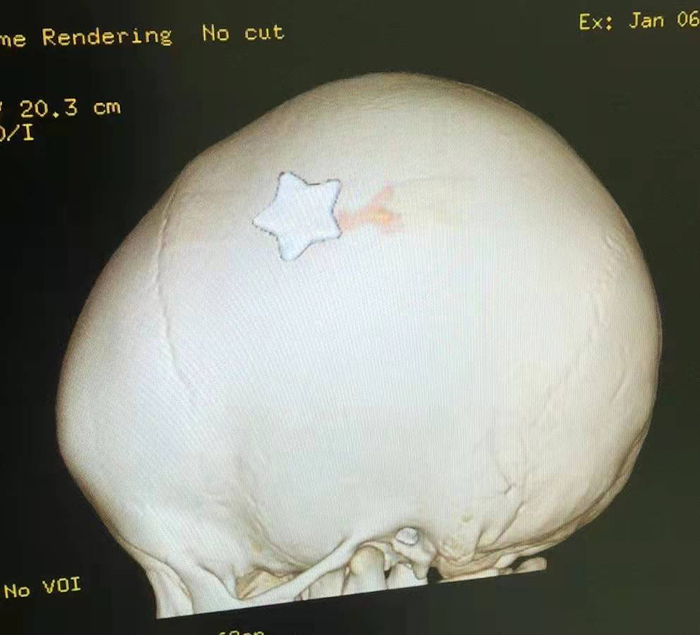 随即,上海市儿童医院神经外科神经重症组组长刘剑钢主任团队紧急开展讨论,一致决定采取对孩子创伤较小的方案取出异物。在长达近5个小时的手术过程中,医生顺利完成了清除破碎组织、复位凹陷颅骨、还纳骨板并用可吸收骨折内固定体固定住的工作。最后,在神经外科、手术室与外科重症监护室的通力合作之下,医护人员们成功“摘星”。