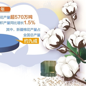 “现在新疆棉花产量占全国总产量的九成以上。”王建红介绍,新疆棉花总产、单产、种植面积、商品调拨量连续20余年居全国第一。