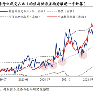 从成交额角度看,新能源板块成交额分位已回落至均值-1.5倍标准差阈值以下。采用滚动一年的方式计算新能源板块的成交额的历史分位、均值及标准差。可以看到,当前新能源板块成交额已向下突破滚动一年计算的历史均值-1.5倍标准差阈值,交易拥挤度回落至历史低位。