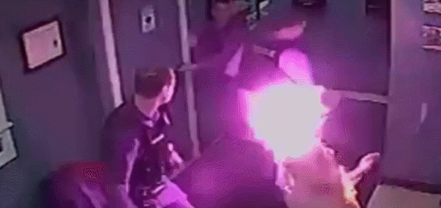 美国警察使用电击枪意外点燃男子:受害人起火身亡 3名警察惊慌逃离