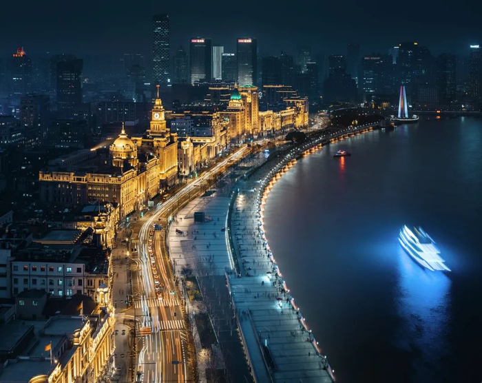 一千多米长的外滩拥有中国最大的近代建筑群,涵盖了外廊式、新古典主义、哥特复兴、装饰艺术等各种风格,几乎是一部生动的缩略版近现代建筑史,更是上海的“城市会客厅”。外滩地区现存的建筑风貌被称为 “外滩三期”,主要成形于20世纪20年代。