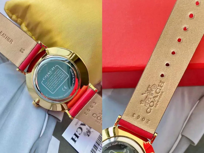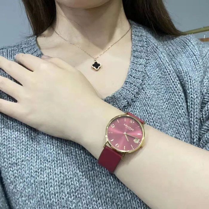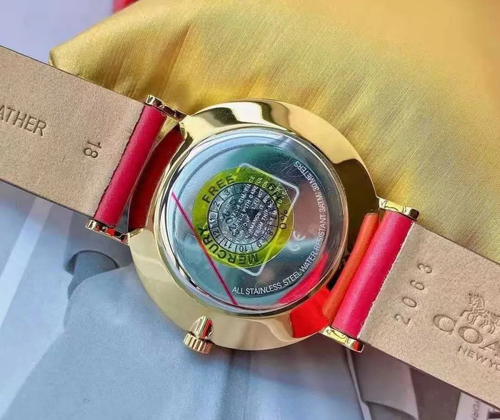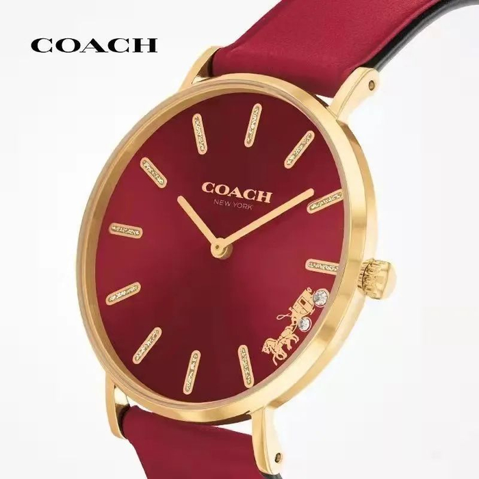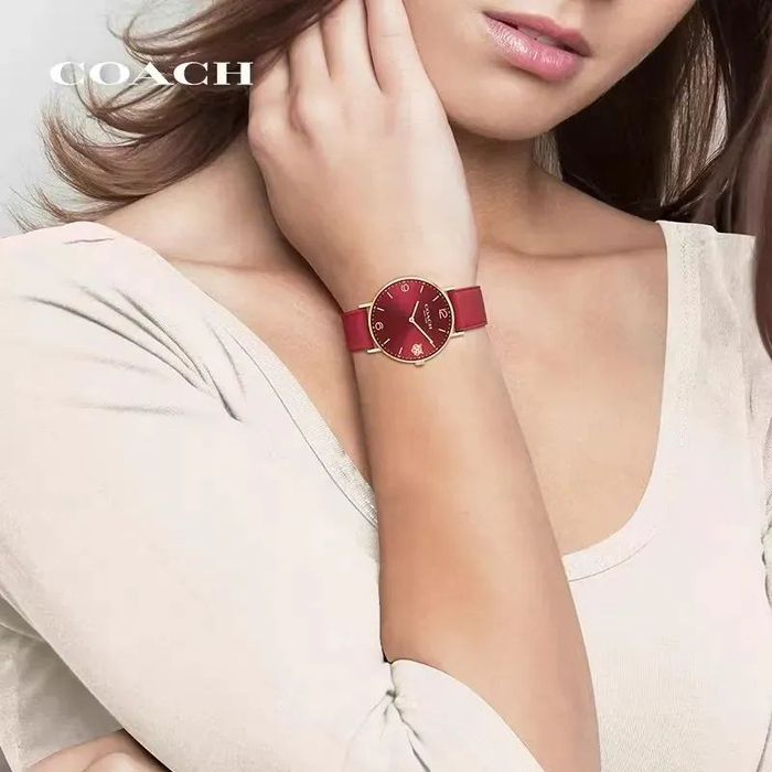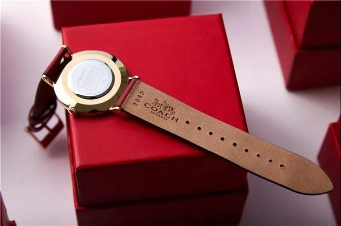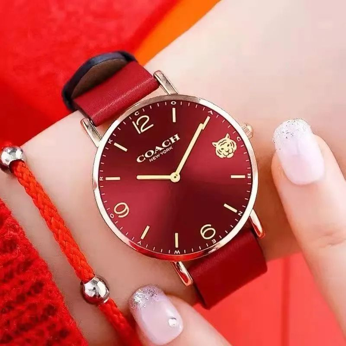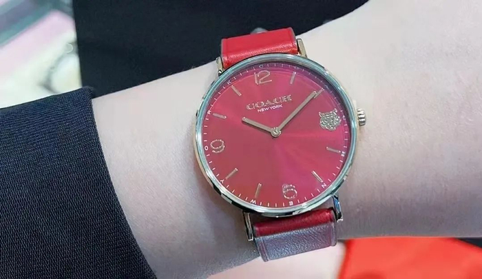 简约风的表盘设计,用纯红色表盘当做底色。金色的蔻驰标志透出一种独立女性硬气、自信的强大气场,轻松Hold住全场目光。
