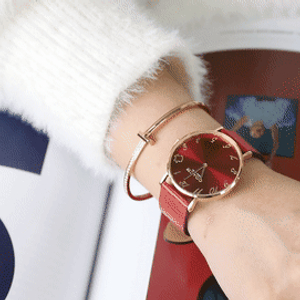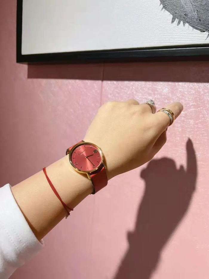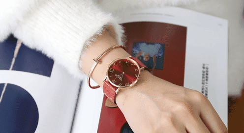 葡萄佳酿般的红色,配以落日余晖一样的闪亮表盘,呈现质感十足的制表艺术,搭配红色小牛皮表带,年味儿十足又摩登时髦、热情洋溢。
