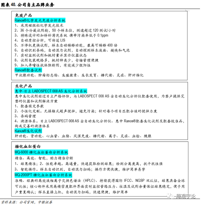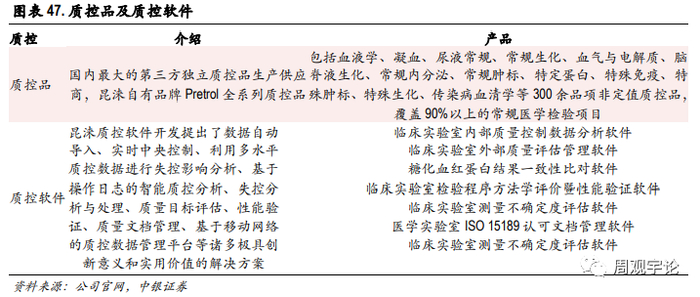 公司积极布局上游 IVD 生产制造领域,目前有惠中医疗、惠中生物、北京惠中、上海昆涞等生产研发类子公司,对 IVD 部分领域产品进行了差异化布局,自主品牌产品覆盖质控、糖化、化学发光、生化、分子诊断、 POCT 等领域。