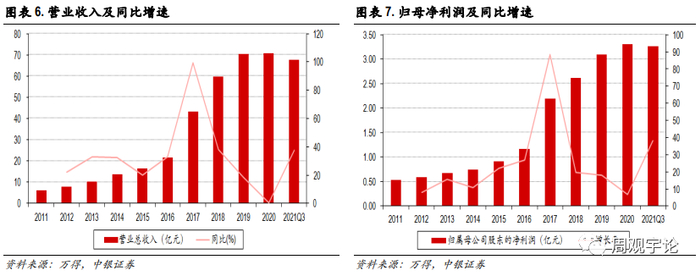 2020年受新冠疫情影响,公司营收受到重大影响,几乎2019年持平。2021年以来随着国内疫情得到控制,公司业务得到大幅恢复,利润率情况也逐步好转。2021 年 1-9 月公司实现营业收入67.73 亿元,较去年同期增长 37.53%,主要系公司业务规模扩大,同时医院的常规诊疗活动和公司的各项业务逐步恢复常态化。2021 年 1-9 月公司实现归母净利润 3.26 亿元,较去年同期增长 38.05%,主要系公司营业收入稳定增长。