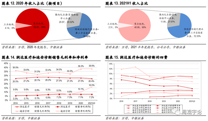 外延内生,工业板块有望厚积薄发。一方面,公司通过收购和自主研发逐步完善对 IVD产品业务版图的布局,包括糖化产品、质控产品、POCT 产品、分子诊断产品、化学发光产品等,其中糖化血红蛋白分析、质控产品已实现国产占比的领先。2021年12月初公司公告润达榕嘉ARP-6465MD三重四极杆质谱仪系统获批上市更是公司研发能力的彰显。2021年12月底公司公告和利德曼达成战略合作,约定双方将在特定区域进行体外诊断产品供应链上下游资源共享,拟在化学发光系统、POCT系统及配套试剂等新产品的技术合作与联合推广等领域展开紧密合作,公司工业板块布局更加值得期待。另一方面,2021年以来公司分别和上海美华妇儿医院和上海儿童医学中心达成合作,深入布局儿童精准诊断。同时公司投资微岩医学,深化布局精准诊疗。