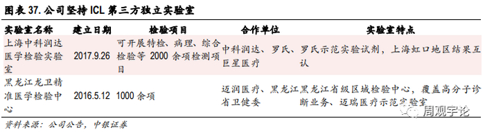 作为院内实验室集约化业务及区域检验中心业务的补充,为满足部分核心客户特检项目需求,公司借助自身资源优势,也积极布局了院外第三方实验室检测业务。公司建立以精准检验为主导、创新模式为特色,学术交流为平台的综合性医学检验实验室,引进国内外一流的高端检测设备,大力推进产学研的发展,完成了基因芯片技术、质谱色谱、细胞成像、蛋白指纹图谱、液态芯片、药敏测试等多个检验技术平台的搭建,范围覆盖了从常规到高端的主流技术领域,检验项目超过2000 项,其中包括分子诊断、远程病理诊断、冰冻病理、CTC 循环肿瘤细胞检测、染色体检测等高端检测项目,较好的满足公司集约化客户及区域检验中心客户对部分高端诊断项目的外包服务需求。目前公司有两个第三方实验室,分别是上海中科润达医学检验实验室和黑龙江龙卫精准医学检验中心。