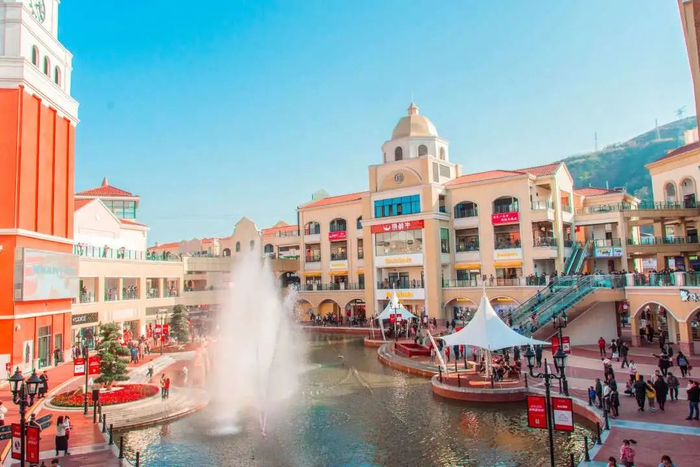 这里以意大利经典建筑风格为灵感,19幢单体建筑通过连廊环环相接,并采用全天候开放的商业步行街模式。广场中心的梦幻喷泉水景,东南角的2500方休闲广场,参照了德国莱茵河休闲风的河滨景观带,都极具特色,迅速成为温州热门观光打卡点。同时融入一站式休闲生活配套、情境化的体验式业态以及各种文化元素的集合,为温州注入新商业活力。