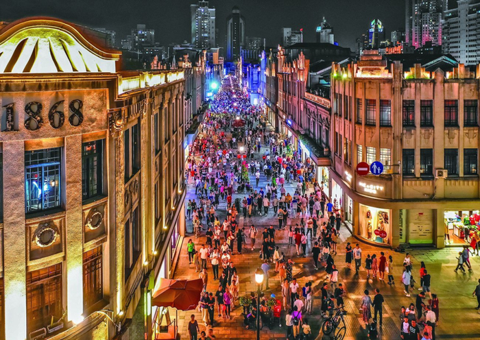 街区“以商承文、以文带旅、以旅兴商”,集各类特色品牌商铺、港瑞新玉海等商业综合体,玉海楼、林庆云宅、利济医学堂、心兰书社等各级文保单位,以及非遗文化展示体验中心、美术馆、鼓词馆等各类文化服务设施于一体,打造集历史展示、体验游览、品质商业、文化创意、时尚休闲和宜居生活为一体的历史街区。