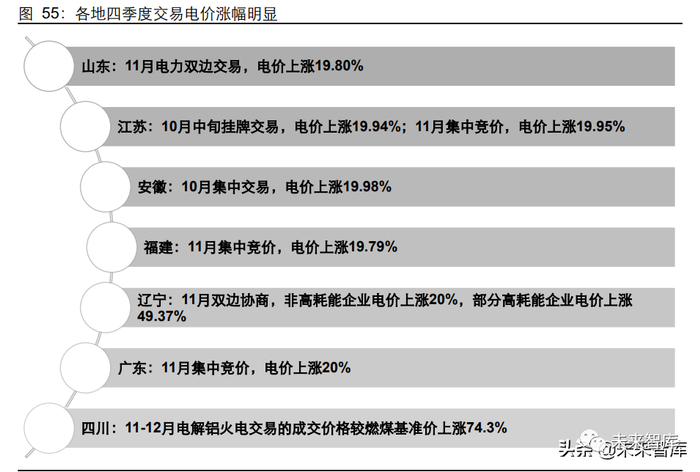在过去的市场化交易中,因为电力供需关系整体比较宽松,交易价格通常较核定的电价 有一定的折价。但在今年电力供应紧张、多地错峰限电以及电煤价格大幅上涨的情况之 下,电力交易的主体电源煤电的电价已经有明显提升,以水电交易为主的云南地区市场 交易电价也有同比上涨,预计水电、核电市场交易部分电价有望实现提升。